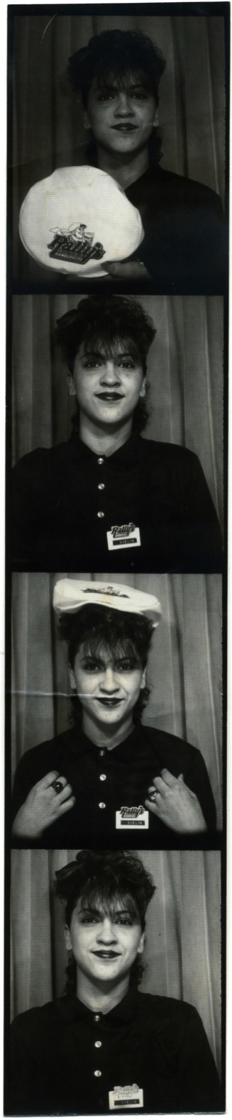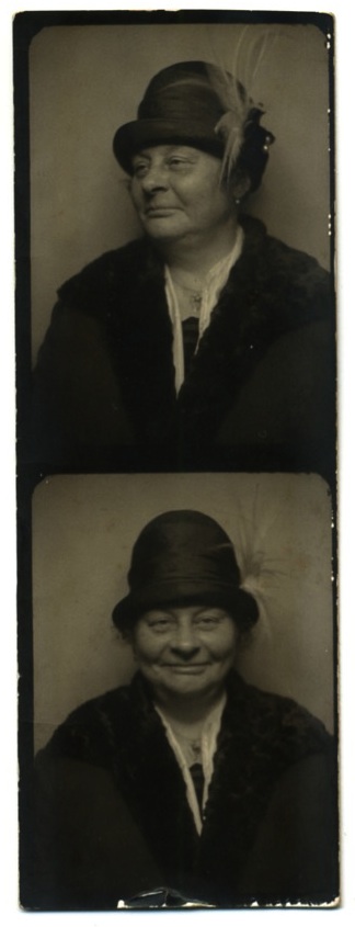 These photomatic photobooth images are from the USA. Though undated, they appear to be from the WW2 era. They were probably taken in the same machine around the same time, possibly even within the same hour, as the visual evidence in hair and clothes might tell us, but also as the cardboard backing that supports the photo is, unusually, upside down on all the images.