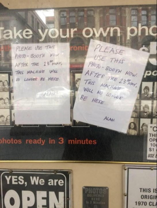 Metro, the company that owns the station, now say that they understand the significance of the photobooth yet, only last week, they gave the owner Alan Adler, ten days notice to remove it after 46 years of its presence at the station. Grrr!