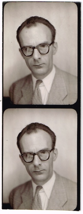 Sometime ago, my friend Ted sent me this gorgeous book on photobooth photography, by Babbette Hines. I immediately recognised the face on the page below, and therefore that the gentleman concerned was lurking in my collection somewhere . . .